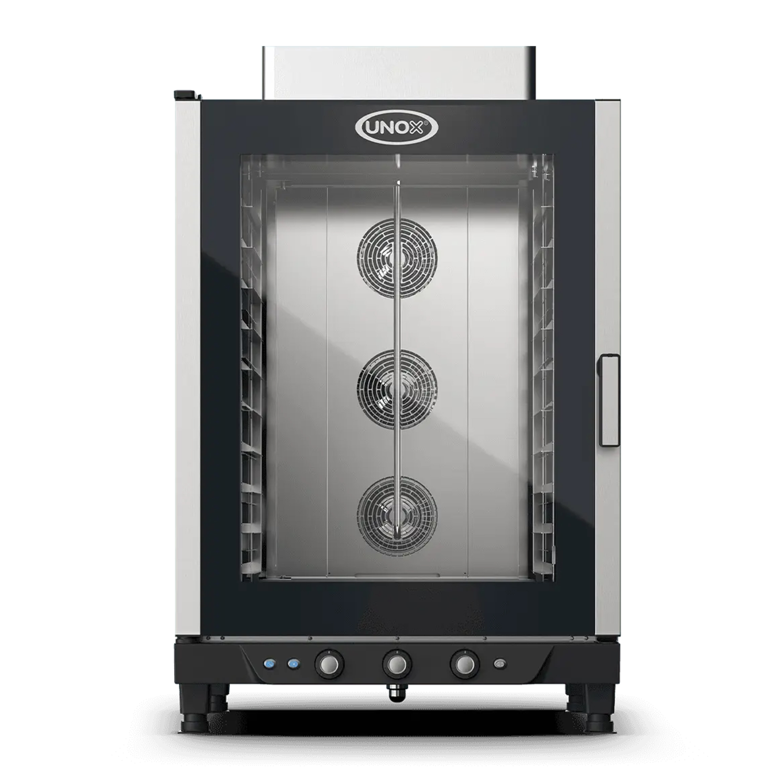 Horno combinado con humedad, control analógico y cámara decocción en acero inoxidable AISI 304. Tiempo, temperatura,porcentaje de humedad y función de 2 velocidades del ventilador.Perfecto para todos los procesos de pastelería de productos frescosy congelados. La tecnología multi ventiladores AIR.Plus garantizahumedad uniforme en todas las bandejas. La combinación perfecta de eficiencia y simplicidad. En menos de un metro cuadrado.