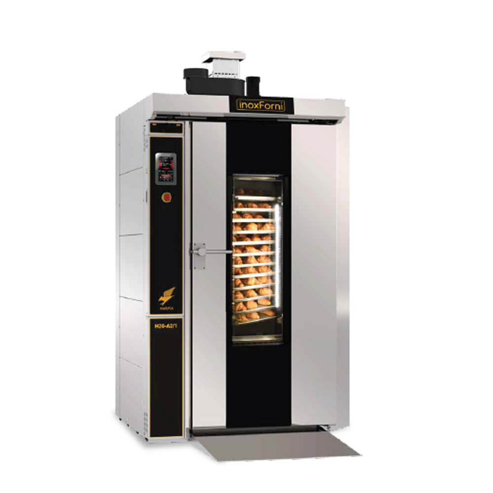 El Horno Rotativo Harpia 40 es un equipo industrial de alto desempeño, diseñado para panaderías, fábricas y centros de producción que requieren máxima capacidad, eficiencia térmica y uniformidad de cocción.
